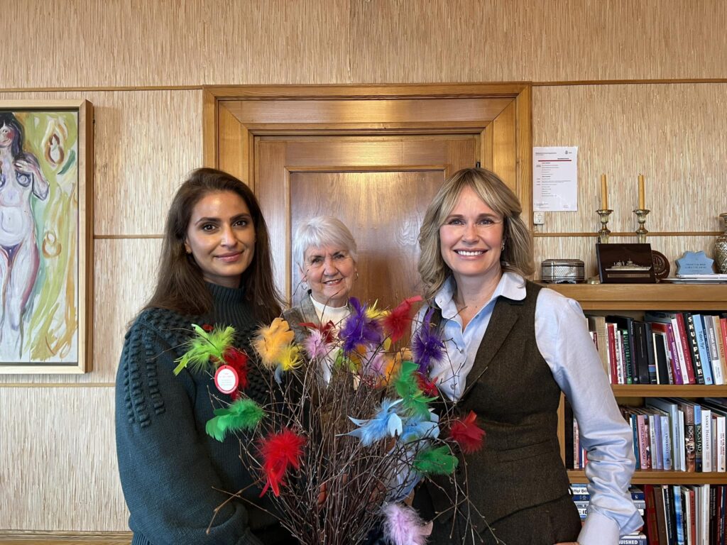 Ordfører Anne Lindbo fikk fastelavnsris av Sanitetskvinnene i Oslo. Fylkesleder Atya Coudhary og Toril Gulbrandsen fra Oslo Omsorgsberedskapsgruppe stod for…