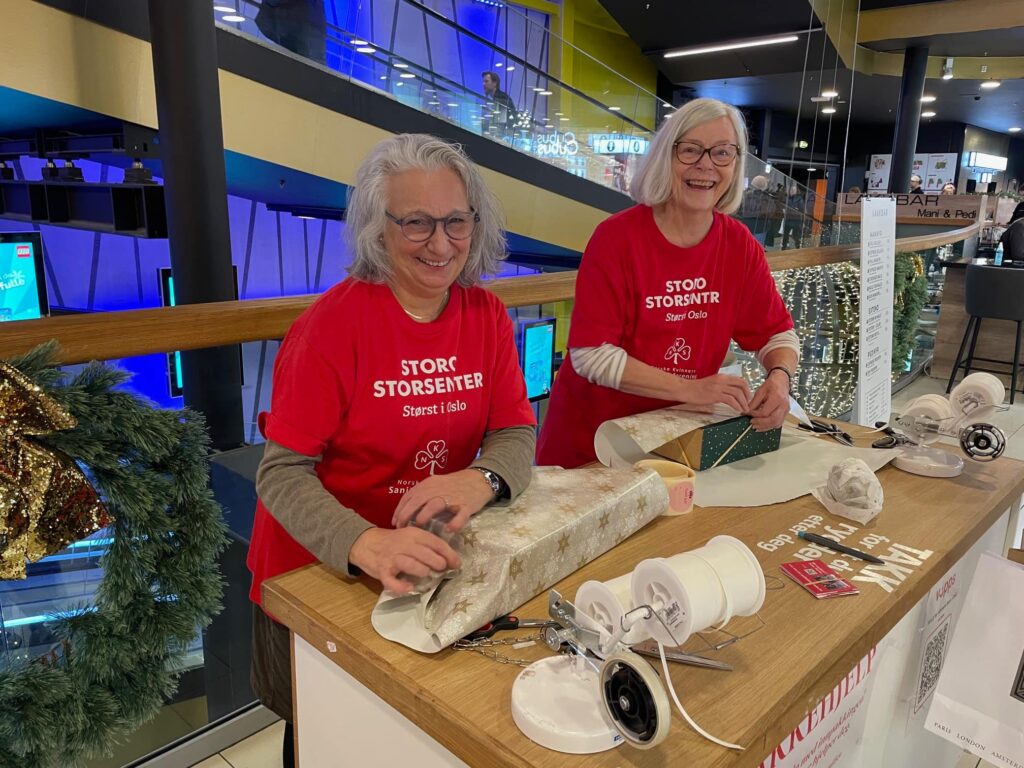 Sanitetskvinnene pakker julegaver på Storo senter
